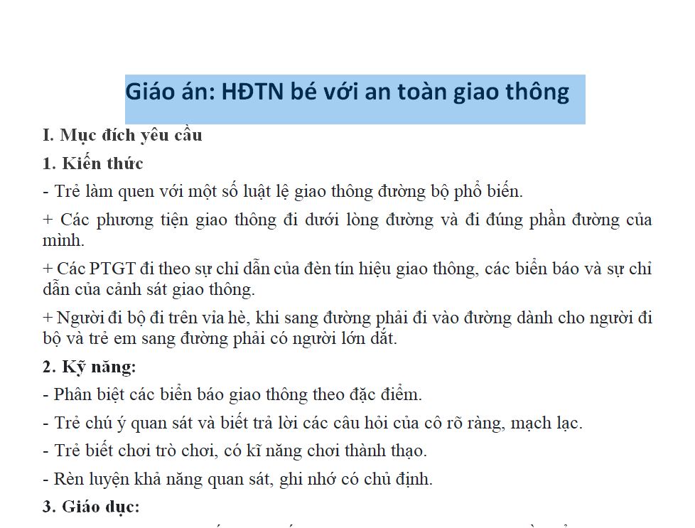 Giáo án lớp chồi: HĐTN bé với an toàn giao thông (PPT + Word)