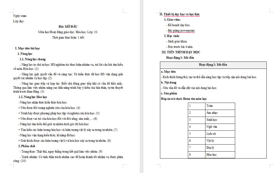 Giáo án Hóa học 10 Mở đầu trình bày dưới dạng Word + PowerPoint dễ dàng chỉnh sửa. Qua đó giúp quý thầy cô tiết kiệm thời gian làm bài giảng điện tử cho riêng mình. Từ đó giúp giờ học trở nên trực quan, hấp dẫn, nâng cao hiệu quả tiếp thu và phát triển năng lực học môn Hóa học. Vậy sau đây là nội dung chi tiết giáo án Hóa học 10 Mở đầu: , mời các bạn tải tại đây.