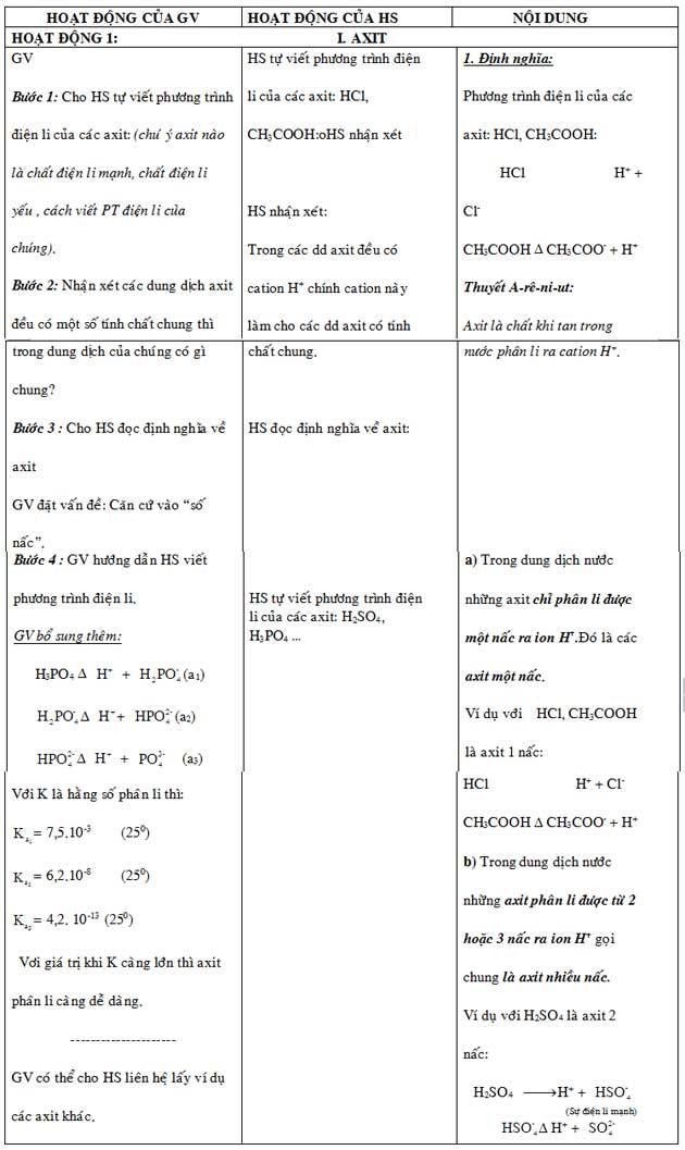 Giáo án môn Hóa lớp 10 bài “Axit, Bazơ và Muối”