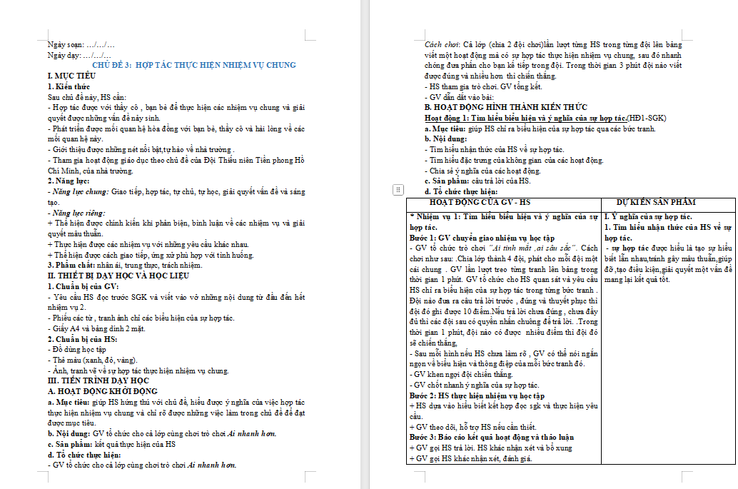 Giáo án Hoạt động trải nghiệm 7 Chủ đề 3: Hợp tác thực hiện nhiệm vụ chung