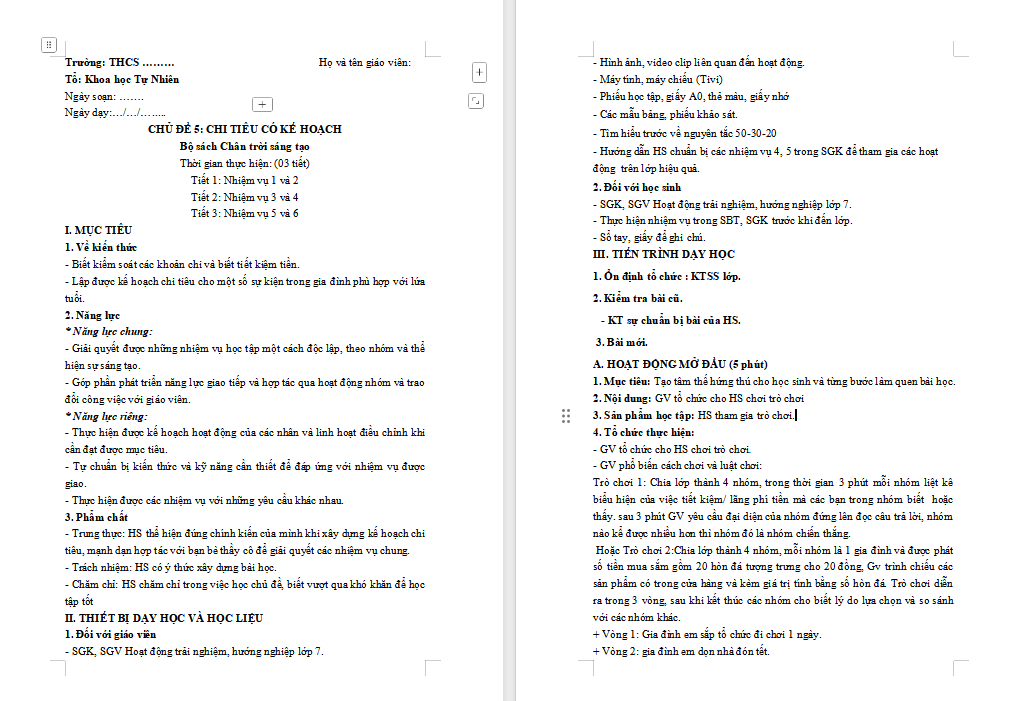 Giáo án Hoạt động trải nghiệm 7 Chủ đề 5: Chi tiêu có kế hoạch