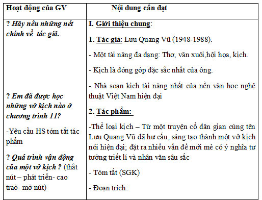 - Thấy được kịch Lưu Quang Vũ đặc sắc ở: sự hấp dẫn của kịch bản văn học và nghệ thuật sân khấu; sự kết hợp giữa tính hiện đại với các giá trị truyền thống; sự phê phán mạnh mẽ và chất trữ tình đằm thắm.