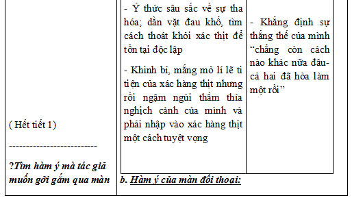- Hiểu được bi kịch của con người khi bị đặt vào nghịch cảnh: Phải sống nhờ, sống vay mượn, trái với tự nhiên khiến tâm hồn nhân hậu, thanh cao bị nhiễm độc và bị tha hóa bởi sự lấn át của thể xác phàm tục..