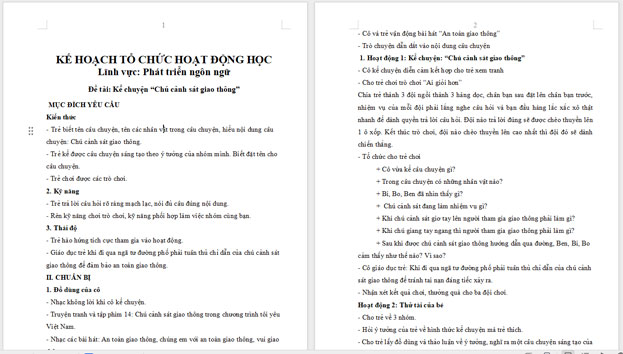 Ngoài File PowerPoint, giáo án dạy kể chuyện “Chú cảnh sát giao thông” còn có file Word có thể tải về và chỉnh sửa, mời các cô tham khảo.