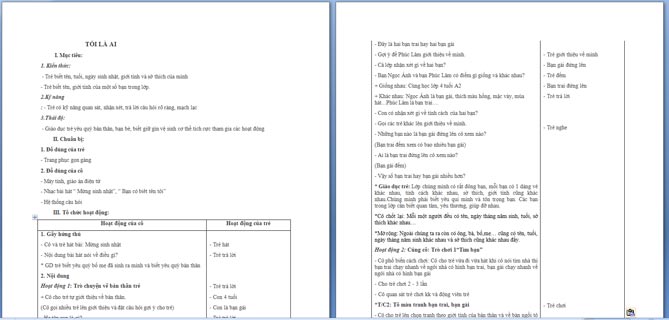 Ngoài File PowerPoint, giáo án khám phá tôi là ai còn có file Word có thể tải về và chỉnh sửa, mời các cô tham khảo.
