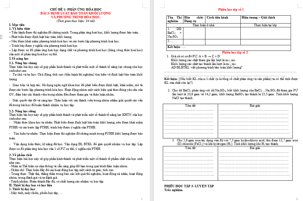 Giáo án Khoa học tự nhiên 8 Bài 3: Định luật bảo toàn khối lượng Phương trình hóa học thuộc phân môn Hóa học là tài liệu rất hữu ích được biên soạn cả dạng Word + PPT. Qua đó giúp quý thầy cô tiết kiệm thời gian làm bài giảng điện tử cho riêng mình.