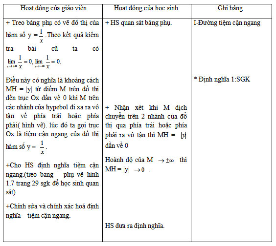 Giáo án môn Toán 12 bài Đường tiệm cận