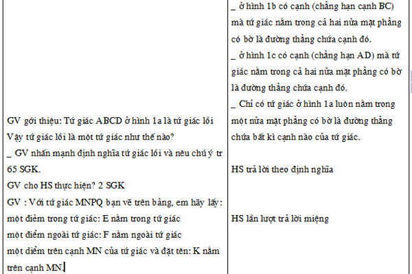 - Học sinh nắm được định nghĩa tứ giác, tứ giác lồi, tổng các góc của tứ giác lồi.