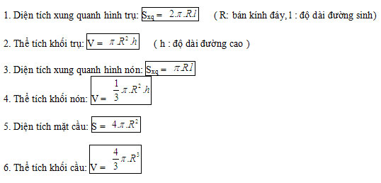VẤN ĐỀ III : DIỆN TÍCH HÌNH TRÒN XOAY - THỂ TÍCH KHỐI TRÒN XOAY