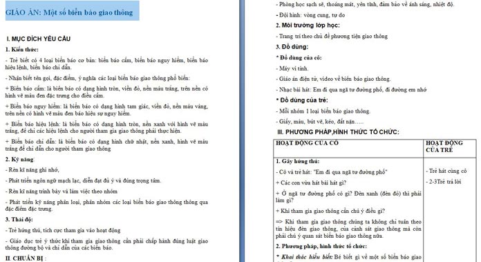 Ngoài File PowerPoint, giáo án một số biển báo giao thông còn có file Word có thể tải về và chỉnh sửa, mời các cô tham khảo.