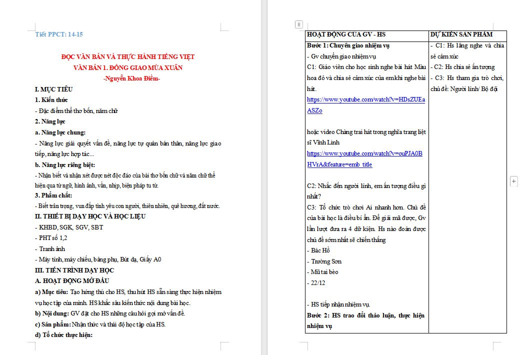 Giáo án Ngữ văn 7 Bài 2: Đồng dao mùa xuân