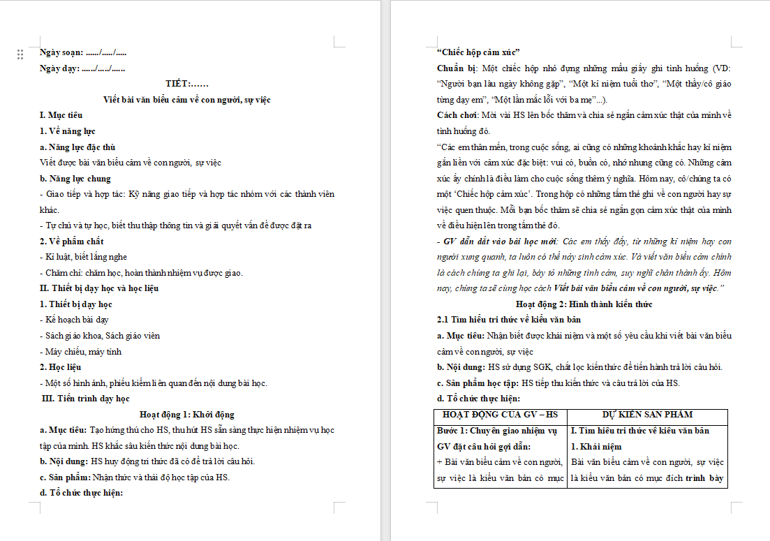 Giáo án Ngữ văn 7 Bài 4 Viết bài văn biểu cảm về con người sự việc
