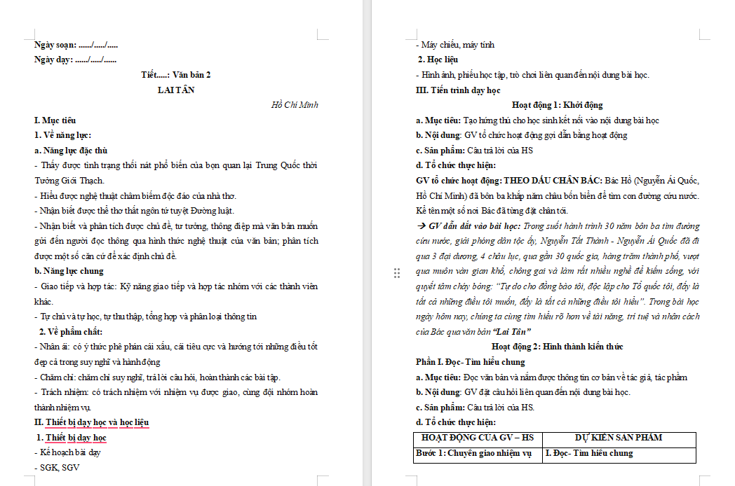 Mời các bạn tải file về để xem trọn bộ giáo án Ngữ văn 8 Bài 4: Lai Tân