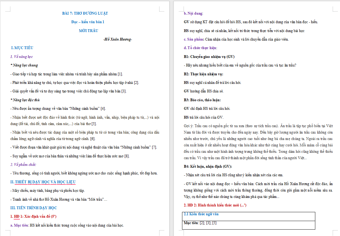 Mời các bạn tải file về để xem trọn bộ Giáo án Ngữ văn 8 Bài 7 Mời trầu
