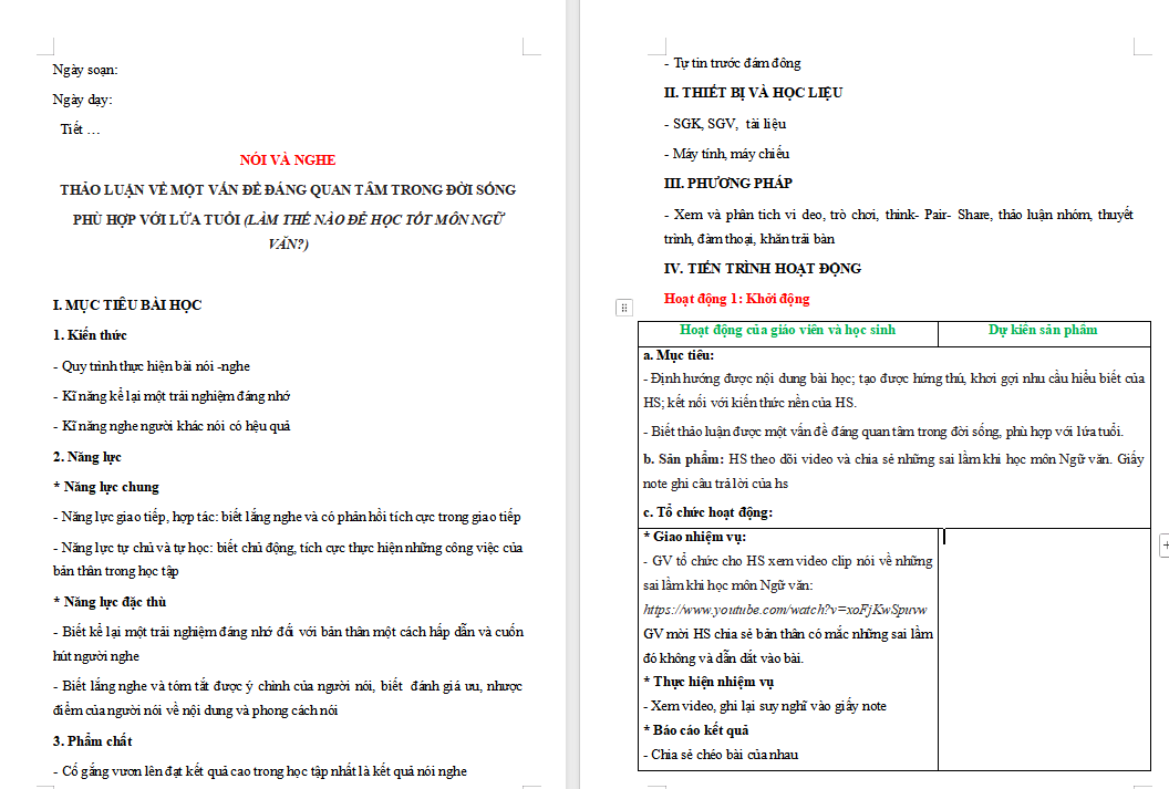 Tải file về để xem trọn bộ Giáo án Ngữ văn lớp 9 Bài 4: Nói và nghe