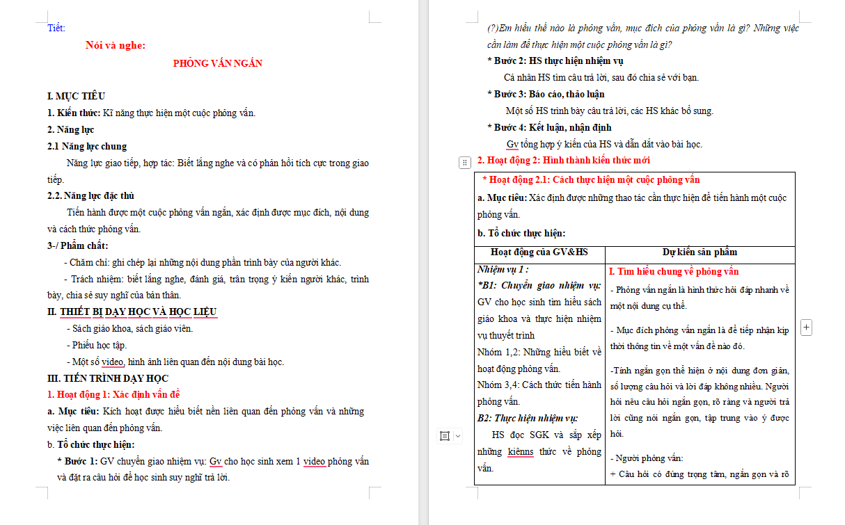 Giáo án Ngữ văn 9 Bài 8: Phỏng vấn ngắn