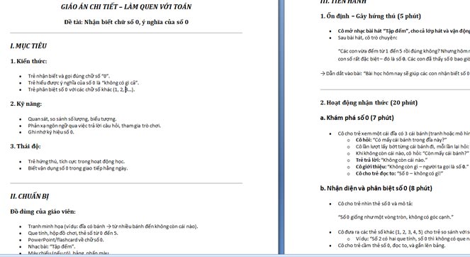 Ngoài File PowerPoint, giáo án nhận biết chữ số 0, ý nghĩa số 0 còn có file Word có thể tải về và chỉnh sửa, mời các cô tham khảo.