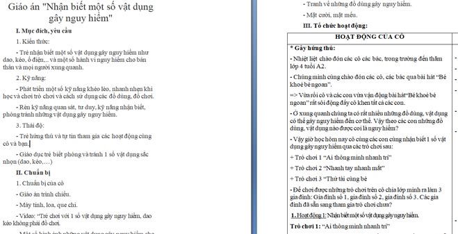 Ngoài File PowerPoint, giáo án nhận biết một số đồ vật nguy hiểm còn có file Word có thể tải về và chỉnh sửa, mời các cô tham khảo.