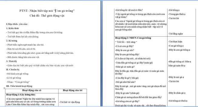Ngoài File PowerPoint, giáo án “Con gà trống” còn có file Word có thể tải về và chỉnh sửa, mời các cô tham khảo.