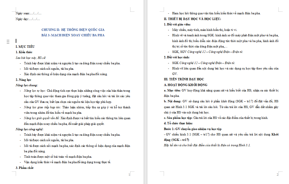 Giáo án Công nghệ 12 Bài 3: Mạch điện xoay chiều ba pha là tài liệu rất hữu ích được biên soạn dưới dạng PPT + Word. Qua đó giúp quý thầy cô tiết kiệm thời gian làm bài giảng điện tử cho riêng mình.