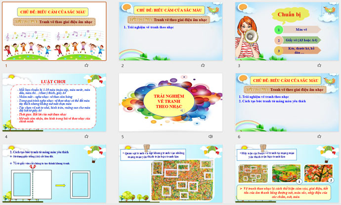 Giáo án PowerPoint Mĩ thuật lớp 6 Chân trời sáng tạo cả năm là tài liệu giảng dạy được biên soạn sáng tạo và khoa học, bám sát chương trình sách giáo khoa. Giáo án được thiết kế dưới dạng slide trực quan, sinh động, với nhiều hình ảnh minh họa phong phú, giúp giờ học trở nên hấp dẫn và gần gũi hơn với học sinh. Tài liệu không chỉ hỗ trợ thầy cô thuận tiện trong việc tổ chức dạy học, mà còn khơi gợi hứng thú, phát triển tư duy thẩm mỹ và khả năng sáng tạo cho các em. Đây là nguồn tư liệu quý giá, đồng hành cùng thầy cô và học sinh trong suốt hành trình học tập môn Mĩ thuật lớp 6.