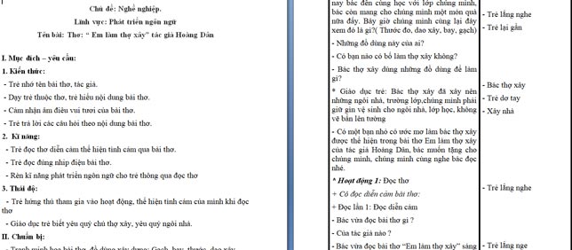 Ngoài File PowerPoint, giáo án thơ ‘Em làm thợ xây’ còn có file Word có thể tải về và chỉnh sửa, mời các cô tham khảo.