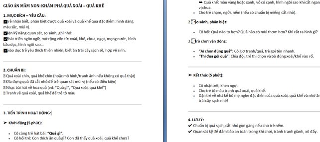 Ngoài File PowerPoint, giáo án quả xoài, quả khế còn có file Word có thể tải về và chỉnh sửa, mời các cô tham khảo.