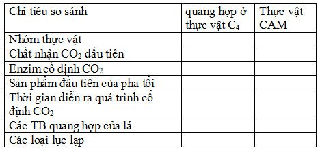 SO SÁNH QUANG HỢP Ở THỰC VẬT C4 VÀ THỰC VẬT CAM
