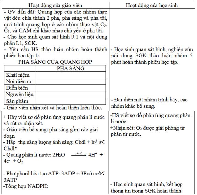 Giáo án Sinh bài Quang hợp ở các nhóm thực vật C3, C4 và CAM