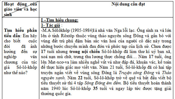 - Nắm được nghệ thuật kể chuyện,khắc hoạ tính cách và sử dụng chi tiết của Sô-lô-khốp.
