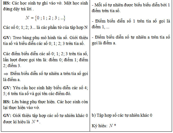 - Học sinh biết được tâp hợp các số tự nhiên, nắm được các qui ước về thứ tự trong tập hợp số tự nhiên, biết biểu diễn một số tự nhiên trên tia số, nắm được điểm biểu diễn số nhỏ hơn bên trái điểm biểu diễn số lớn hơn trên tia số.
