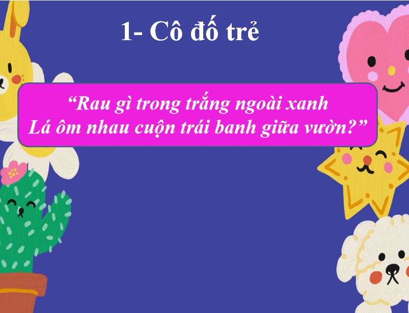 Bạn muốn mang đến cho trẻ một giờ học thơ vừa vui nhộn vừa giàu cảm xúc? Giáo án thơ “Bắp cải xanh” chính là “bí quyết nhỏ” để biến lớp học thành một khu vườn tràn ngập niềm vui! Các hoạt động trong giáo án sẽ giúp trẻ làm quen với loại rau bắp cải xanh, đồng thời phát triển ngôn ngữ, khả năng ghi nhớ, diễn đạt, cảm thụ thơ ca. Với giáo án này, mỗi tiết học không chỉ là giờ học – mà là chuyến phiêu lưu khám phá thiên nhiên, gieo mầm yêu thương trong tâm hồn trẻ thơ!