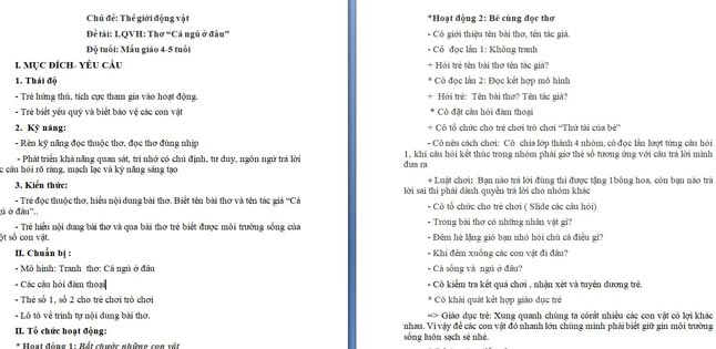 Ngoài File PowerPoint, giáo án thơ ‘‘Cá ngủ ở đâu’ còn có file Word có thể tải về và chỉnh sửa, mời các cô tham khảo.