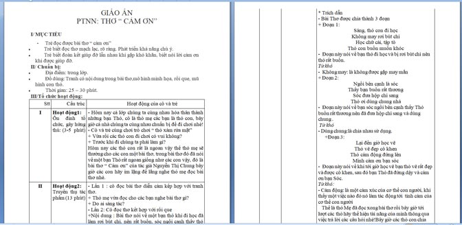 Ngoài File PowerPoint, giáo án thơ "Cảm ơn" còn có file Word có thể tải về và chỉnh sửa, mời các cô tham khảo.