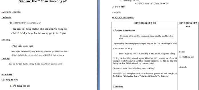 Ngoài File PowerPoint, giáo án thơ “Cháu chào ông” còn có file Word có thể tải về và chỉnh sửa, mời các cô tham khảo.