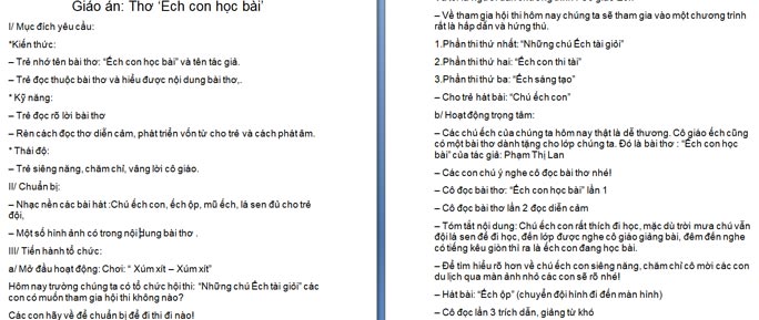 Ngoài File PowerPoint, giáo án thơ “Ếch con học bài” còn có file Word có thể tải về và chỉnh sửa, mời các cô tham khảo.