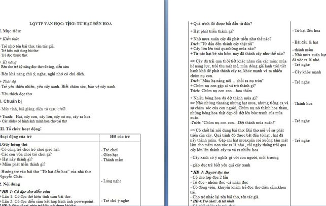 Ngoài File PowerPoint, giáo án thơ ‘Từ hạt đến hoa’ còn có file Word có thể tải về và chỉnh sửa, mời các cô tham khảo.