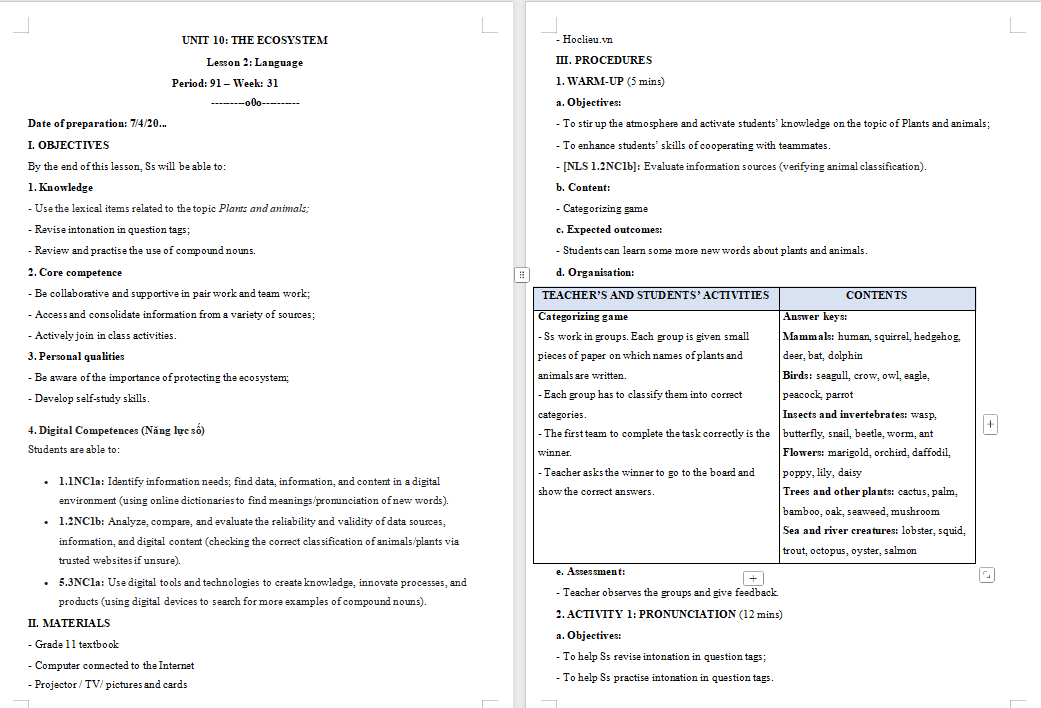 Giáo án Tiếng Anh 11 Unit 10: Language trình bày dưới dạng file PowerPoint + Word đã tích hợp năng lực số dễ dàng chỉnh sửa, bổ sung. Với bố cục rõ ràng, nội dung bám sát chương trình và các hoạt động tương tác đa dạng, giáo án không chỉ giúp học sinh phát triển kỹ năng nghe - nói mà còn tạo hứng thú học tập, khuyến khích các em tự tin tham gia vào các hoạt động trên lớp. Đồng thời giúp quý thầy cô tiết kiệm thời gian làm bài giảng điện tử cho riêng mình. Vậy sau đây là nội dung chi tiết giáo án Tiếng Anh 11 Unit 10: Language , mời các bạn tải tại đây.