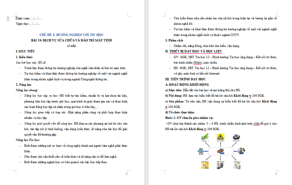 Giáo án Tin học 12 Bài 19: Dịch vụ sửa chữa và bảo trì máy tính tích hợp AI