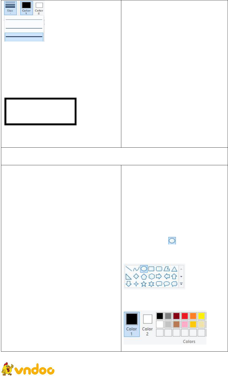Vẽ hình từ hình mẫu có sẵn. Chọn độ dày, màu nét vẽ