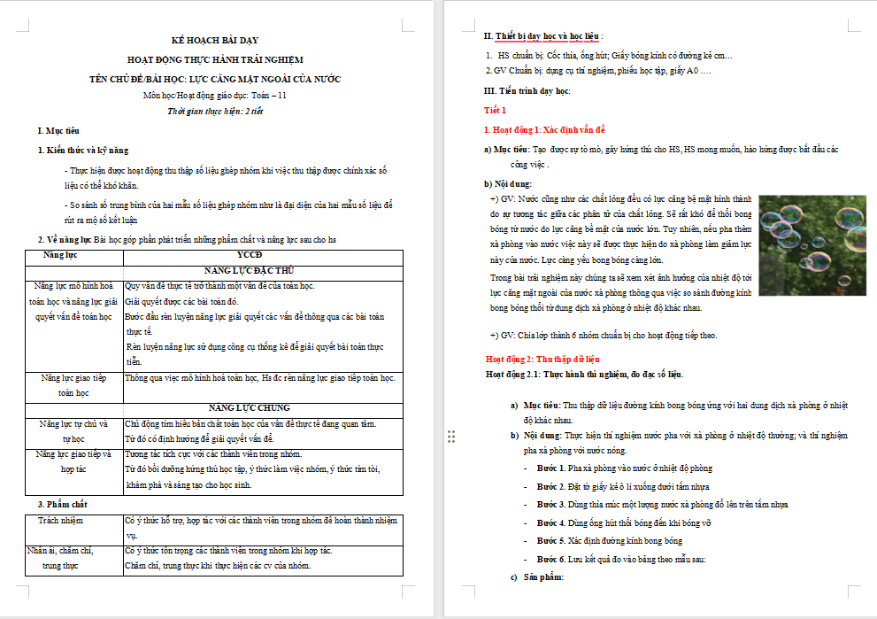 Giáo án Toán 11 Lực căng mặt ngoài của nước Kết nối tri thức trình bày dưới dạng Word + PowerPoint dễ dàng chỉnh sửa. Qua đó giúp quý thầy cô tiết kiệm thời gian làm bài giảng điện tử cho riêng mình. Từ đó giúp giờ học trở nên trực quan, hấp dẫn, nâng cao hiệu quả tiếp thu và phát triển năng lực học môn Toán. Vậy sau đây là nội dung chi tiết giáo án Toán 11 Lực căng mặt ngoài của nước mời các bạn tải tại đây.