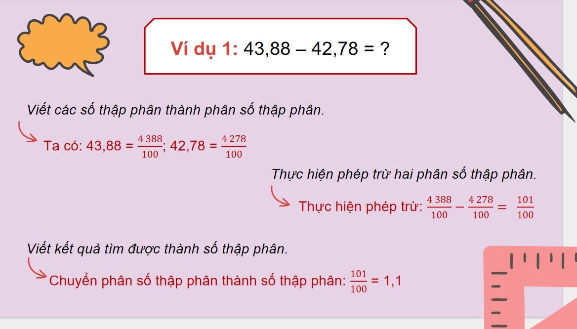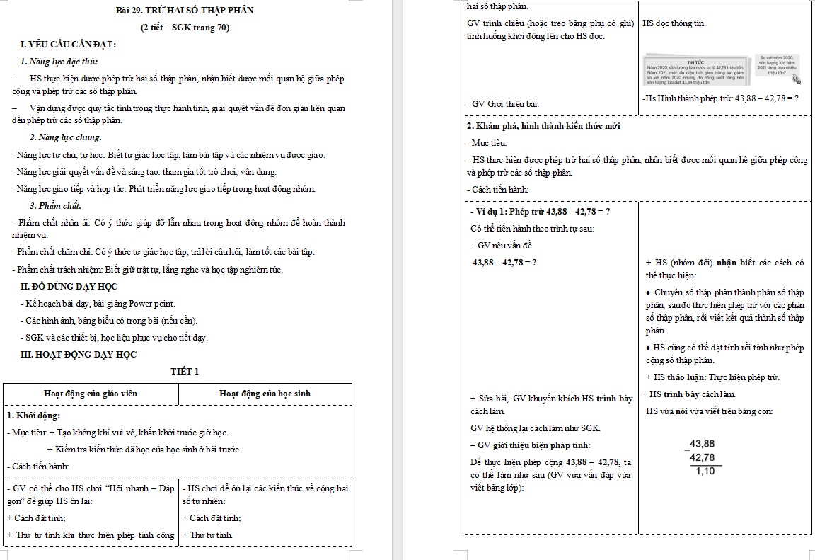 Giáo án Toán 5 Bài 29: Trừ hai số thập phân