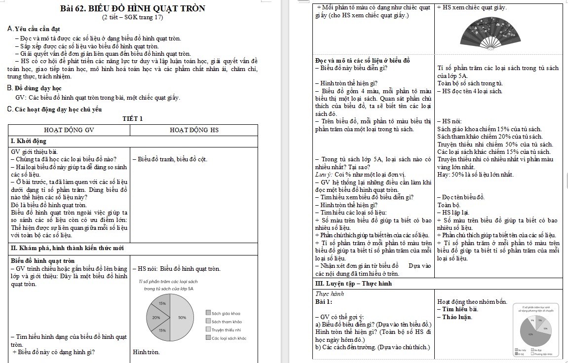 Giáo án Toán 5 Bài 62: Biểu đồ hình quạt tròn