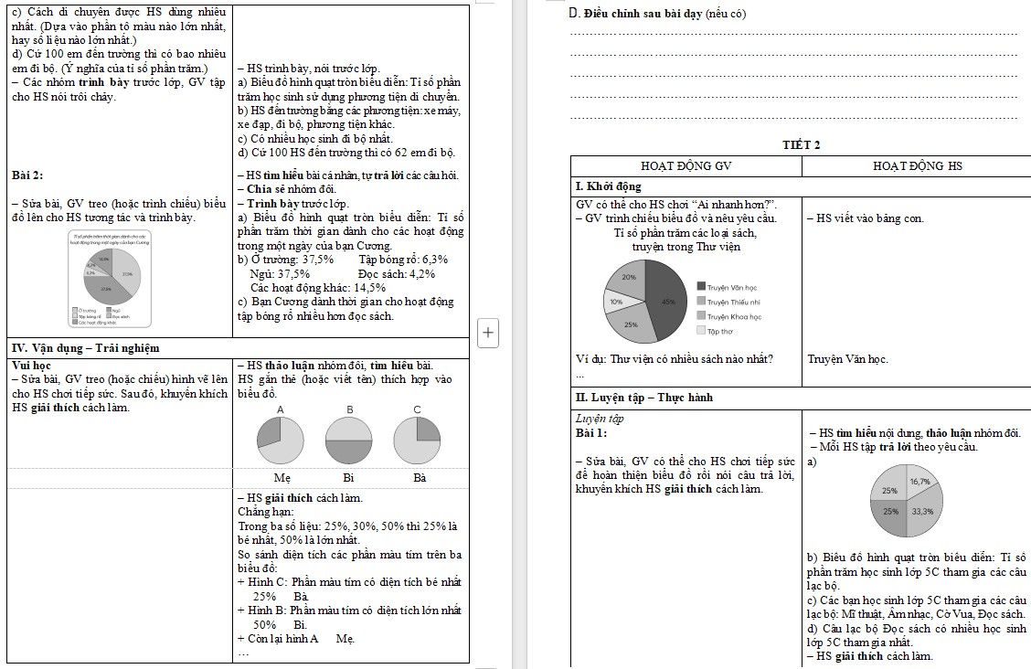 Giáo án Toán 5 Bài 62: Biểu đồ hình quạt tròn trong bài viết sau đây là nội dung bài học thuộc Chương 5: Tỉ số phần trăm trong SGK Toán 5 CTST. Mẫu giáo án Toán lớp 5 bài 62 Chân trời sáng tạo bao gồm đầy đủ bài giảng PowerPoint và kế hoạch bài dạy file word sẽ là tài liệu tham khảo bổ ích cho các thầy cô.