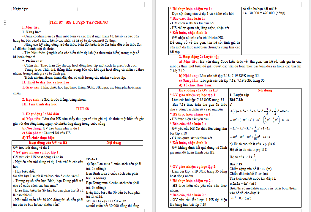 Giáo án Toán 7 Bài Luyện tập chung trang 35
