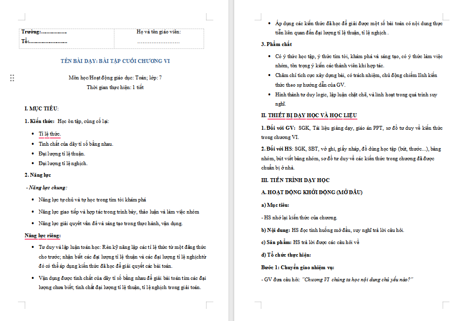 Tải file về để xem trọn bộ Giáo án Toán 7 Bài tập cuối chương 6 Kết nối tri thức