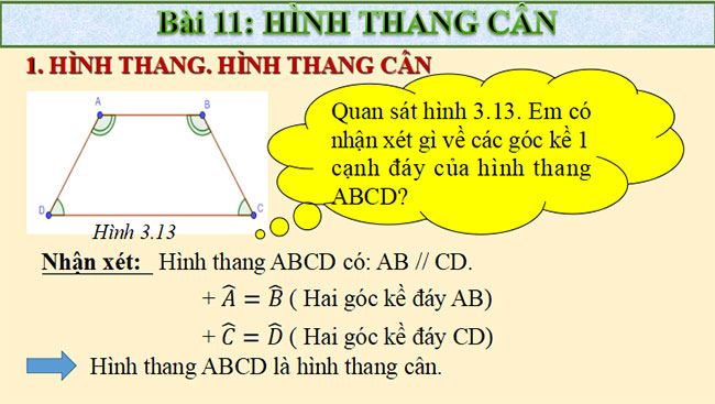 Mời các bạn tải file về để xem đầy đủ Giáo án PowerPoint Toán 8 Bài 11: Hình thang cân