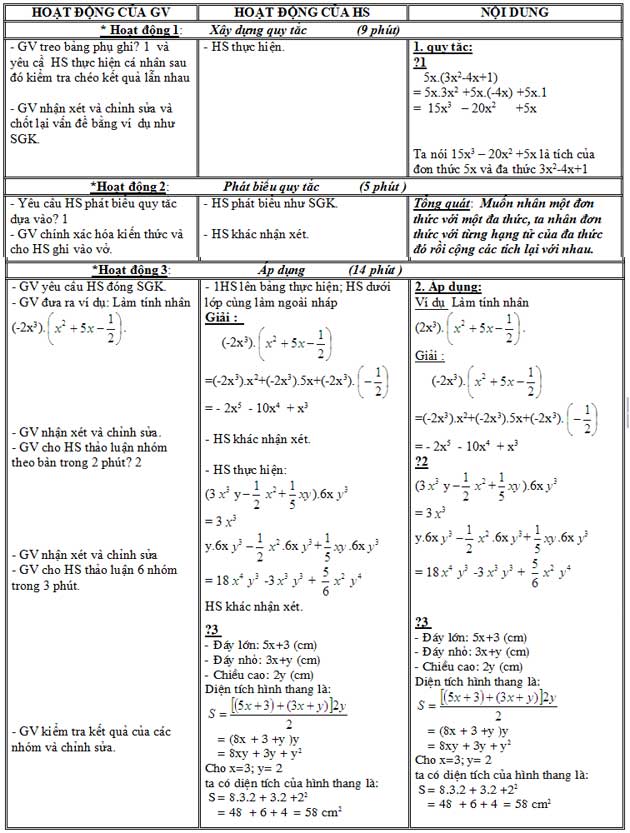 Giáo án bài "Nhân đơn thức với đa thức"