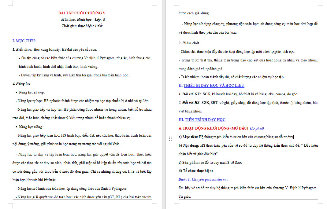 Giáo án Toán 8 Bài tập cuối chương 5 là tài liệu rất hữu ích được biên soạn cả dạng Word + PPT. Qua đó giúp quý thầy cô tiết kiệm thời gian làm bài giảng điện tử cho riêng mình.