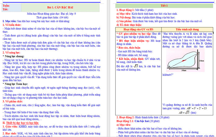 Giáo án toán 9 chân trời sáng tạo chương 2 bài 1 Căn bậc hai sẽ là tài liệu hữu ích, hỗ trợ thầy cô tổ chức tiết dạy hiệu quả, cuốn hút, và phù hợp với định hướng đổi mới giáo dục hiện nay.